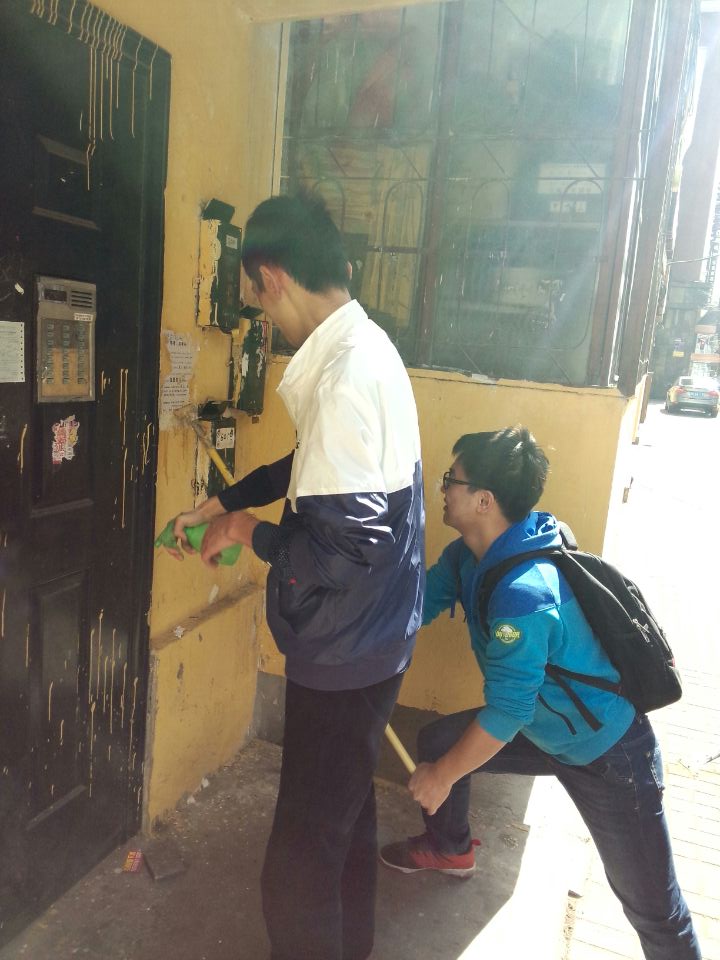 志愿者分工清理小广告