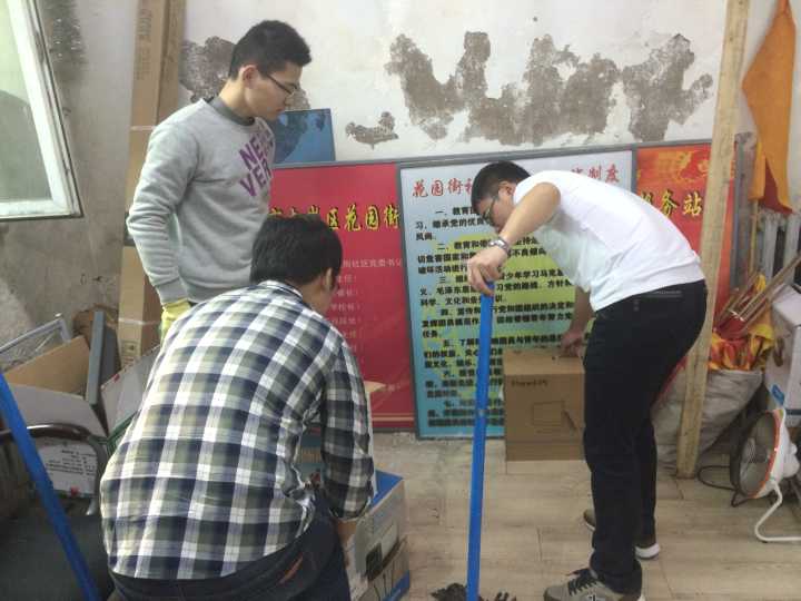 志愿者们整理储物室的杂物