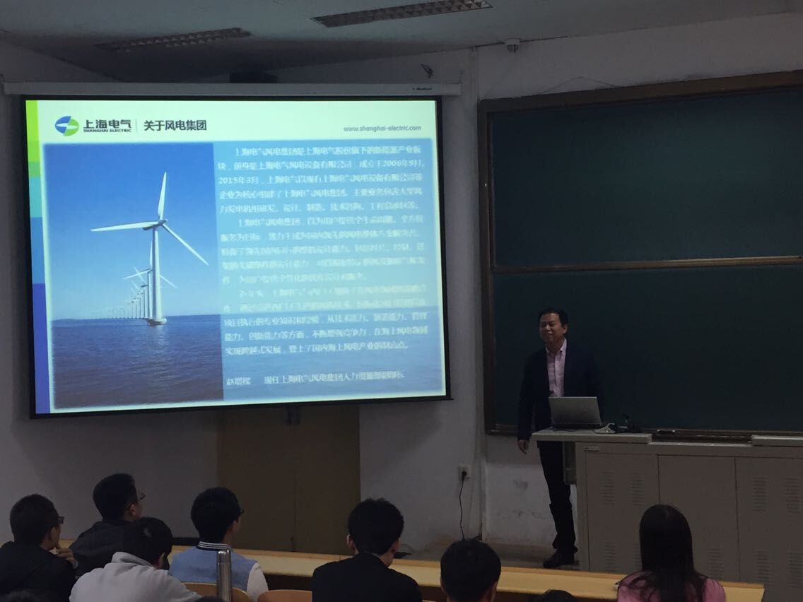 10月16日下午,tyc7111cc太阳成集团特别邀请上海电气风电集团人力资源部赵增�部长做了《求职准备与面试技巧》专题讲座。讲座由tyc7111cc太阳成集团辅导员金凤秋老师主持,学院高年级本科生、研究生,以及部分其他院系学生到场聆听。
