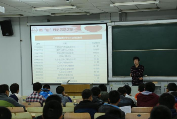 10月25日上午,由太阳成tyc7111cc学生工作处心理健康教育中心主办,tyc7111cc太阳成集团学生工作办公室承办的tyc7111cc太阳成集团2015级本科新生心理健康教育讲座在二校区主楼B11成功举办。刘超老师担任了讲座的主讲嘉宾,带领tyc7111cc太阳成集团本科新生用“心”开启大学生活的智慧之旅。