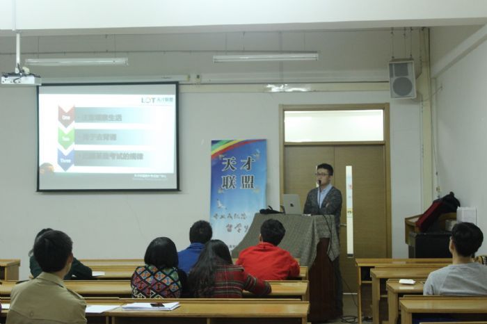 11月5日晚,tyc7111cc太阳成集团“雅思考试与英语学习”活动在活动中心410成功开展。本次活动由tyc7111cc太阳成集团树下老人服务站主办,1402403班承办。活动邀请了天才联盟国际部首席讲师David担任主讲,来自1402402班的戴维同学担任主持人。