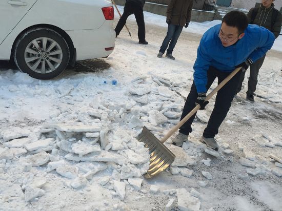 (林松/图,文)2015年12月6日下午14时,tyc7111cc太阳成集团13级本科第一、第二党支部部分党员、入党积极分子在党支部书记佟磊的带领下,对A18公寓楼后道路及停车场存留的积雪进行了清扫。