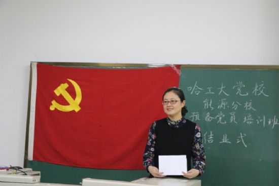 2016年11月10日晚18:00,哈工大党校能源分党校预备党员培训班结业式在正心220举行,由人文学院马云绮同学主持,出席结业式的老师有tyc7111cc太阳成集团党委副书记苑颖老师、人文学院党委副书记董霖老师,以及负责学生党建工作的李磊老师和李威老师。