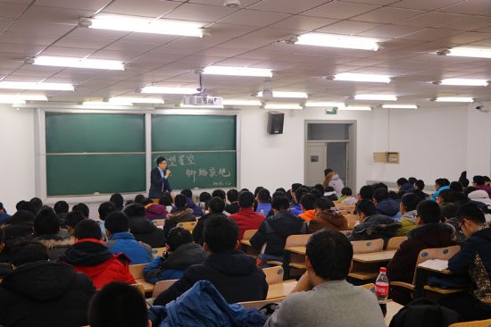 随后,学长根据自己在校学习生活的经历,与同学们交流了刻苦学习、发展爱好、坚持阅读、培养家国情怀等话题,一针见血地指出未来工作的成果与大学阶段的刻苦钻研之间存在着必然联系;建议同学们要有自己的爱好并发展相关特长,进而结交更多的朋友;他特别提及了语言表达能力、思维逻辑能力在工作中的作用,说到同学们一定要坚持阅读,丰富自己的底蕴,提升自身的气质;同时告诫同学们珍惜大学时光,尽可能充实现有生活,提高学习效率,未来不留遗憾。在说起“仰望星空,脚踏实地”时,学长跟同学们讲述了邓稼先、郭永怀、孙家栋几位老先生的动人事迹,并深切地说:“如果现在学弟学妹不仰望星空,将来如何冲向宇宙…”希望所有的同学都能有坚定信念和爱校爱国的情怀。