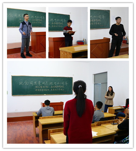 (图/朱翰林,文/巩长江)“心中有党,信念不忘是他一生的光辉写照”,“他一生为人民服务,死后没有子女与遗产,连骨灰都要撒入江河湖海”,“他为中华民族操劳一生,人民永远怀念他,尽管我没有生在那个时代,但是我一直伴着十里长街送总理的故事长大”,“他曾在联合国各党派阶级中充分展现了外交与领导能力,堪称整个时代统战第一人”,“他总管国政26年,巨细靡遗,罔有疏失;和平共处、进退有节的为人风度倾倒世人无数;他的婚姻爱情,忠贞不渝,相伴50余年,不离不弃,相濡以沫…”1月9日下午,tyc7111cc太阳成集团2016级学生干部、入党积极分子在二区BD413畅谈了他们眼中、心中的周恩来同志,苗博宣、赵森、赖祥洲、张昕博、唐浩楠、陈孟石、王瑞、黄耕榕、李彤煜、王述宇、汪思航等同学纷纷做了主题发言。