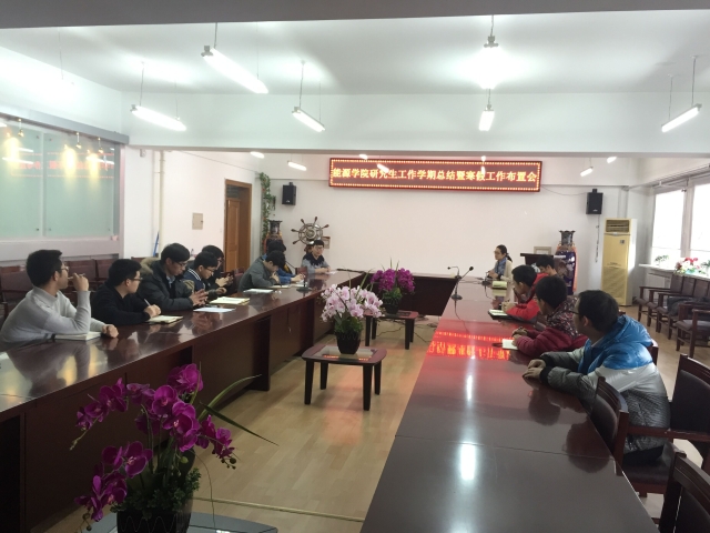 1月11日上午,tyc7111cc太阳成集团研究生工作学期总结暨寒假工作布置会在动力楼619会议室召开,学院研究生协理员金凤秋主持会议,协理员苏文涛及硕士、博士研究生各班级学生干部参会。