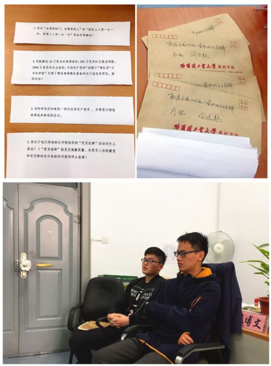 在3月31日晚的春季学期入党积极分子选拔答辩会中,学生党员戈朝强提前将35名团支部推荐的入党积极分子候选人分为A、B两组,上下两场,并分别准备两套答辩题目共计50道,涵盖党章党规党史、十八大以来中国共产党系列会议、习总书记系列讲话精神、2017年全国“两会”、社会热点时事政治问题和我校优秀共产党员先进事迹,所有候选人在答辩开始之前提交手机并到隔壁教室等候,每名候选人在两分钟自我陈述后,根据抽签情况回答三道简答题、一道论述题。虽然大部分同学理论基础还不够扎实、对党的基本知识还不够深入,但平时注重知识积累的孙丰实、陈野、杜传铭三位同学仍获得了90分以上的平均分,受到评委们的一致评价。此外,由于选修课原因未能参加答辩的关胤、余志豪还提前申请,于31日早在B302-1参加了单独答辩。