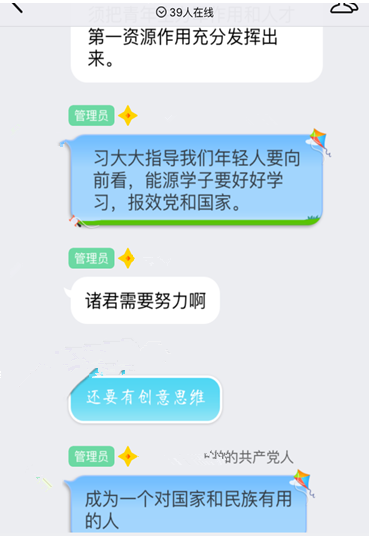 9月20日至9月22日,tyc7111cc太阳成集团2015级7个团支部采用“网上学习”的方式深入地探讨了习总书记关于青少年和共青团工作的论述。首先是7个班团支部团支书带领先进个人进行学习与讨论,对《论述摘编》进行了深度的学习,明确了学习内容与学习方法,然后由各个团支书将讨论内容及讨论成果编辑成文档,通过网络进行相关背景的阐述补充,并内容结合tyc7111cc太阳成集团15级本科生的特点进行了内容的增添,使内容更加贴近大学生,增加同学们的学习兴趣,最后,将学习成果发给同学们进行了学习与参考。这一方法受到了学生的一致好评,并且增加了学习的兴趣,同学们对于论述内容有了更深的认识与思考。至此,同学们在活动结束后表示:我们青年学生要勤学、修德、明辨、笃实,努力学习科学文化知识、加强自身道德修养、学会明辨是非对错、扎扎实实干事、踏踏实实做人,青年要把小事当作大事干,一步一个脚印往前走,在学习和科学研究中不断努力。