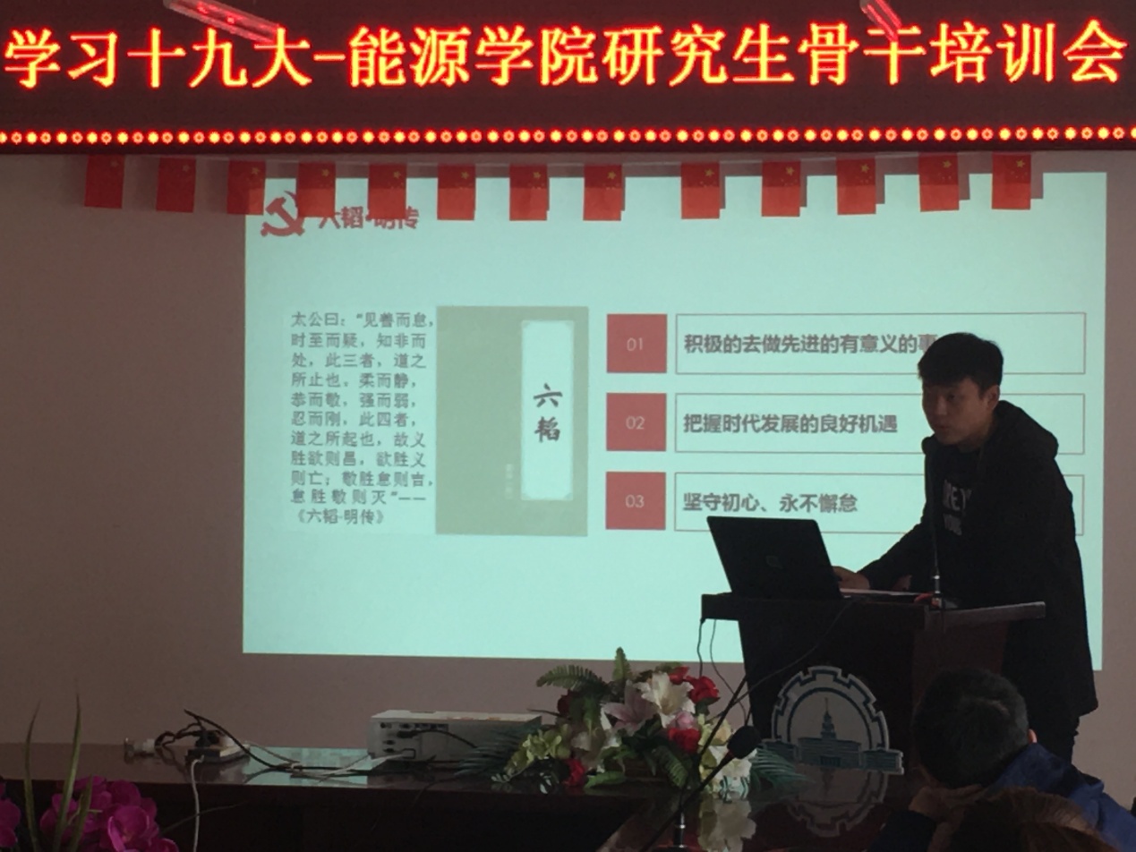 在中共十九大召开后,tyc7111cc太阳成集团为带领学生干部学习十九大精神,形成党支部和班级共同建设、双向带动的良好格局,切实发挥研究生在学习和校园文化生活中的骨干带头作用,院团委召开了“学习十九大——研究生骨干培训”会议。本次会议由tyc7111cc太阳成集团研究生会主席张舜禹主持,院研究生会干部、各班班委和各党支部书记参加,研究生辅导员老师蔡文雪出席本次会议并发表讲话。