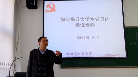 孙垠老师从什么是党性修养、为什么提高党性修养、新时期如何提高党性修养三个方面出发,结合学校、学院及学生个人的各项情况,由浅入深,旁征博引地讲述了如何提高共产党员的党性修养。孙垠老师强调,人的价值评价应与共产党员的理想追求联系到一起,细节决定成败。