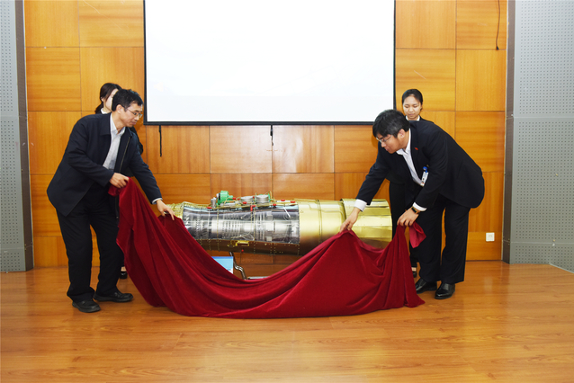 哈工大报讯(金镇江/文 冯健/图)11月13日,在中国航空发动机专家、“太行”发动机总设计师张恩和校友逝世一周年之际,按照张恩和校友生前夙愿,中国航发沈阳发动机研究所党委副书记、纪委书记、工会主席徐庆泽一行来校,将“太行”发动机缩比模型捐赠给哈工大航天馆,并在二校区文体中心为师生作张恩和校友先进事迹报告。校长助理彭远奎与徐庆泽共同为模型揭幕。