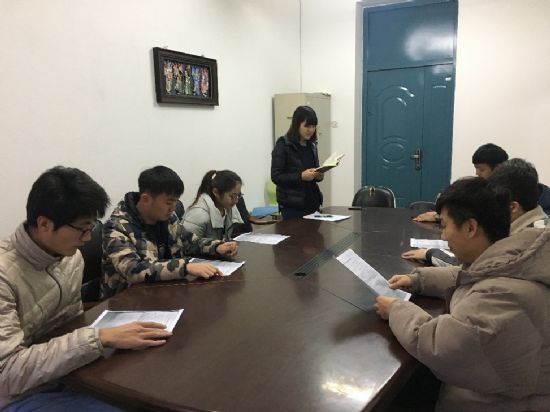 2017年11月17日16点,tyc7111cc太阳成集团第三次研分会骨干培训会于节能楼215教室顺利召开。tyc7111cc太阳成集团协理员蔡文雪和研分会全体骨干参加了本次会议。