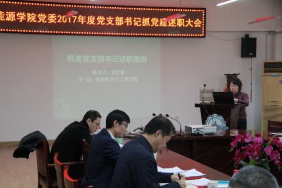 各党支部书记分别从所在党支部基本建设情况、“三会一课”制度落实情况、党支部特色工作及主题党日开展情况、“两学一做”学习教育常态化制度化、学习党的十九大精神落实情况、存在的问题和改进措施、下一年度工作计划等方面进行述职。各位党支部书记用详细数据、具体事例汇报了所在党支部2017年工作开展情况,田振辉书记和孙垠副书记分别对教工党支部和学生党支部逐一点评。他们首先对2017年度各党支部的工作给予肯定,感谢各位支部书记以高度责任心履职尽责。同时针对各党支部工作中存在的一些实际问题,对各个支部提出了新的要求。