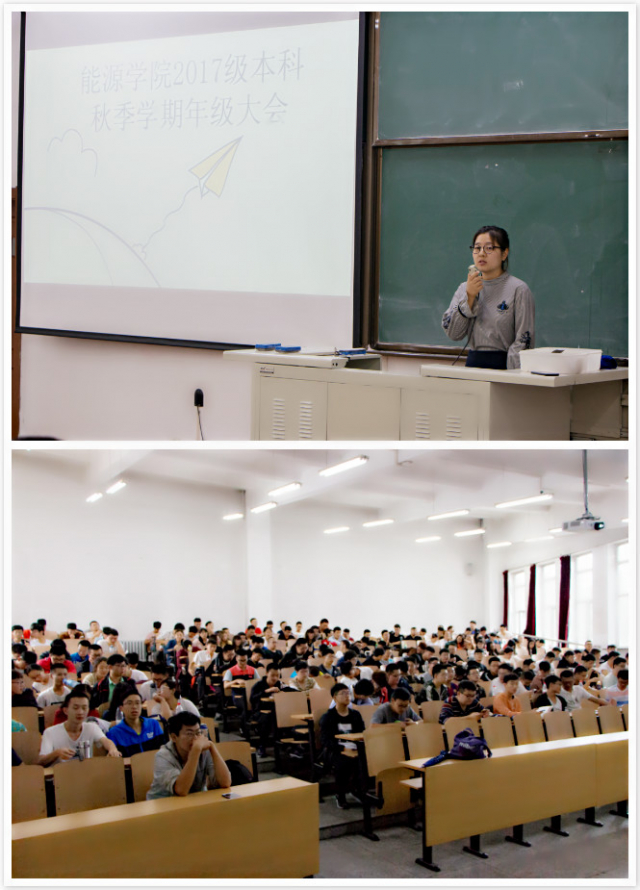 会上,首先邀请来本院交流和转专业的同学上台做自我介绍,并欢迎他们加入能源大家庭。其次,辅导员蔡文雪对同学们提出殷切希望,她希望学生要成为一名信念执着,品德优良,知识丰富,本领过硬,具有国际视野的能源人,她着重强调要培养学生自主解决问题的能力。再次,辅导员蔡文雪介绍了tyc7111cc太阳成集团的基本概况,包括学生工作的相关老师和tyc7111cc太阳成集团人才培养目标等等。接下来,辅导员蔡文雪总结了上学期的学习情况,并介绍了同学们关心的保研政策以及就业情况。通过保研及就业情况,她强调了学习成绩对一个哈工大人的重要性,告诫同学们对于学习不能有一丝一毫的放松。最后,蔡老师提出了“六个多“寄语,嘱咐同学不忘初心,牢记自己学生的使命,在这学期再创佳绩。
