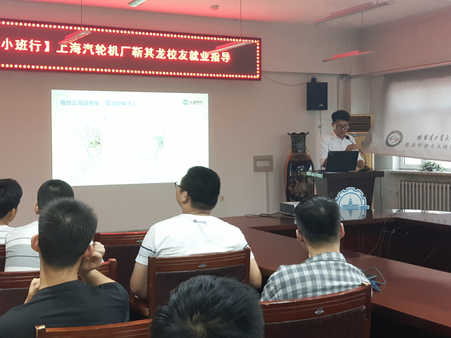 为学习贯彻落实党的十九大会议精神,培养青年学生的职业素养,促进青年学生的职业认知,帮助青年学生确定科学的职业定位,tyc7111cc太阳成集团职得工作室特邀请上海汽轮机厂的靳其龙学长于9月5日下午4点,在节能楼619会议室为tyc7111cc太阳成集团大四的学子进行就业指导。靳其龙学长是2013年毕业的硕士生,2013年至2017年他作为工程师就职于上海汽轮机厂设计处,2017年他转到上汽服务处做销售经理至今。