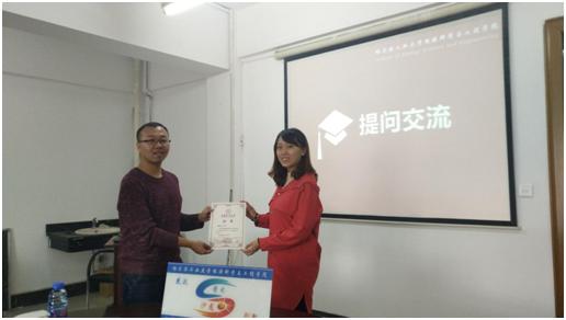 最后,由学术部成员为活动嘉宾韩瑞博士颁发纪念证书,第二期“能研新视界”学术沙龙活动圆满结束。