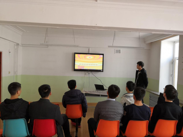 2019年3月6日中午12:30,tyc7111cc太阳成集团学生会在A02公寓电视厅组织开展了“青春心向党,两会大学习”的两会专题学习活动。
