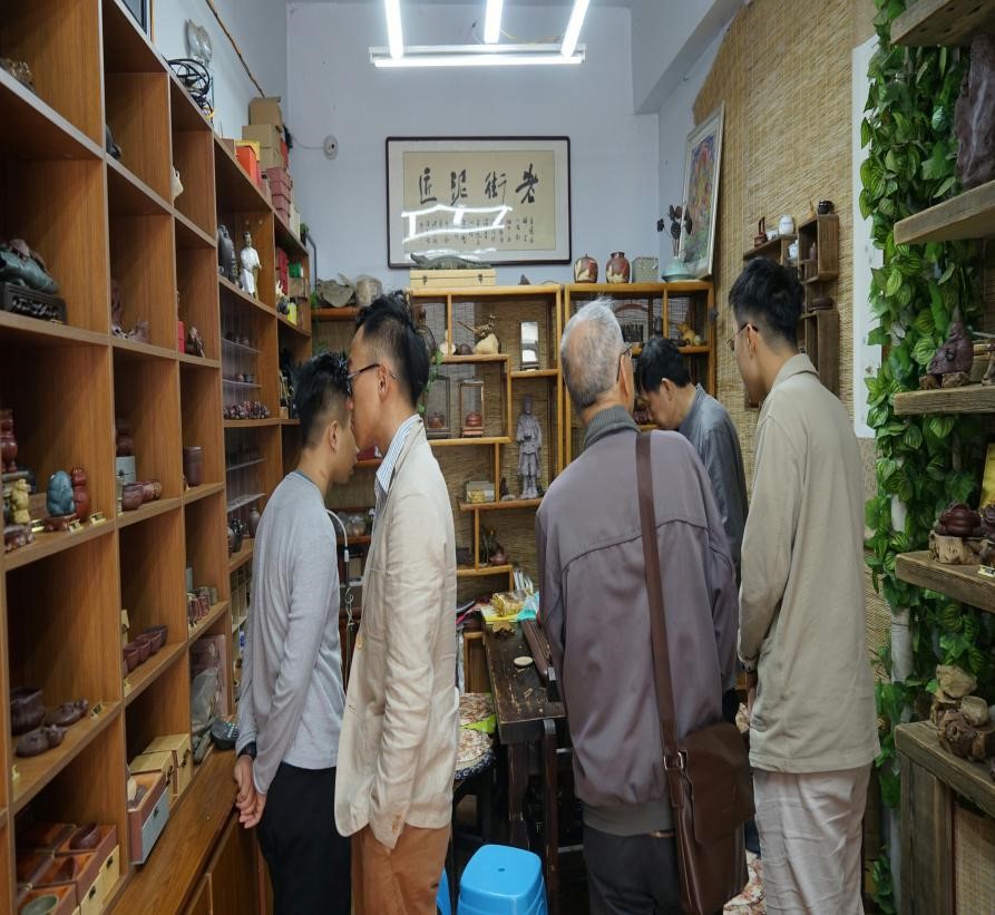 1602001团支部组织带领同学们参观了老道外工艺美术家、紫砂制作与秋果核雕技艺传承人杨富长先生工作室。
