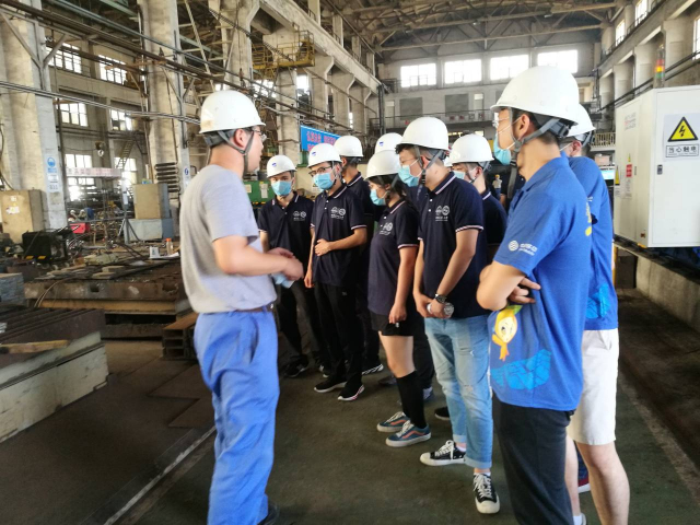 短暂的休整之后,实践团于8月5日上午正式开始实习活动。同学们在公司领导的讲解下,了解了荏原公司的发展历程和业务范围,带队教师王博文带来哈工大tyc7111cc太阳成集团与青岛荏原进行“产学研合作基地”项目牌并邀请校友们于百年校庆时回母校参观,相关领导表示高度重视。下午前往生产车间和办公室进行了实地参观,直观地了解了垃圾焚烧炉的制造流程以及荏原公司的工作环境。