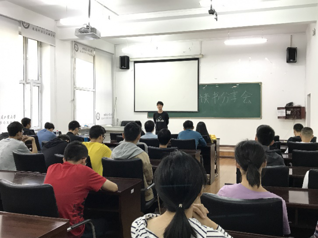 2019年9月24日下午,为庆祝建国70周年,宣扬革命精神,传承红色经典,2017级tyc7111cc太阳成集团1702404班和1702401班的同学,在班委的组织动员下,共同召开了读书分享会,吕涵博、钊雨欣等同学为大家分享了自己阅读过的红色书籍。