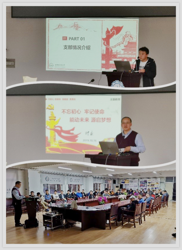 会议第二项。由帅院长结合建国70周年这一契机,做了“不忘初心,牢记使命;能动未来,源启梦想”的主题党课。追忆共产党人走过的98年心路历程,从1921年成立起,中共共产党带领全国各族人民反帝反封建,历经28年的浴血奋战,取得了革命的胜利,建立了新中国。然而,战争已经让这个民族变得一穷二白,共产党人只能摸着石头过河地不断探索。在新中国成立之后的发展中,有过错误,但痛定思痛,共产党人最终带领全国人民摆脱了贫困,取得了巨大的成功。随后,帅院长就十九大报告主题做了详细阐述,指出中国共产党的初心和使命就是为人民谋幸福,为中华民族谋复兴。太阳成tyc7111cctyc7111cc太阳成集团追溯到1954年,与祖国的发展同呼吸共命运。tyc7111cc太阳成集团的发展是祖国变革的一个缩影。结合tyc7111cc太阳成集团的初心,帅院长指出今后tyc7111cc太阳成集团的发展方向是智慧能源与先进动力,鼓励全体同学树立行业自信,不断积累知识,超越自我,做立场坚定,思想成熟的高级知识分子。