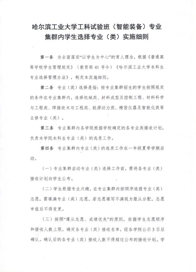 太阳成tyc7111cc工科试验班(智能装备)专业集群内学生选择专业(类)实施细则