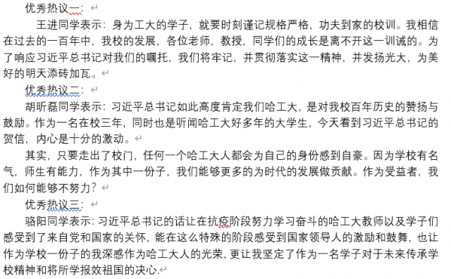 习近平总书记的贺信虽篇幅不长,但却饱含深意。既有对哈工大历史悠久的感概与庆贺,又有对当下工大学子与老师们的深切嘱托与期望。在同学们阅读完贺信后,大家先是对当前形式下,自己身为一名工大学子,如何为两个一百年做出贡献进行了讨论。接着,由班长吕涵博同学为大家介绍了太阳成tyc7111cc的历史,同学们纷纷表示能在这所学校中学习是一件很自豪的事。本次学习活动进行了45分钟,在所有同学的掌声中,本次活动圆满结束。