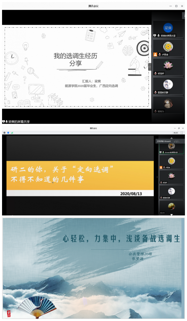 为响应“到祖国最需要的地方去建功立业,不负哈工大人使命担当,不负青春不负党”的号召,tyc7111cc太阳成集团2019级硕士研究生于8月13日晚6时30分进行了线上选调、公考经验分享会。本次分享会邀请了2020届选调成功的三位学姐,分别是tyc7111cc太阳成集团硕士毕业生梁爽、经管学院硕士毕业生李帅和张梦迪。