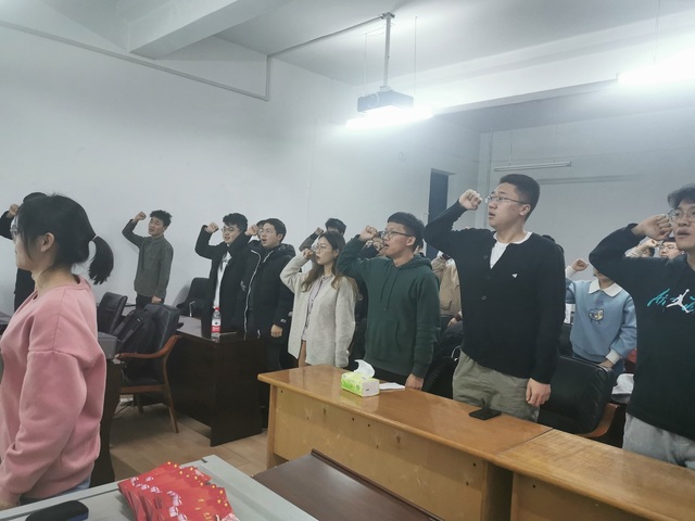 会上,党支部书记田雪峰宣布2018级本科生党支部正式成立,带领全体党员重温入党誓词,集体学习十四五规划相关内容。