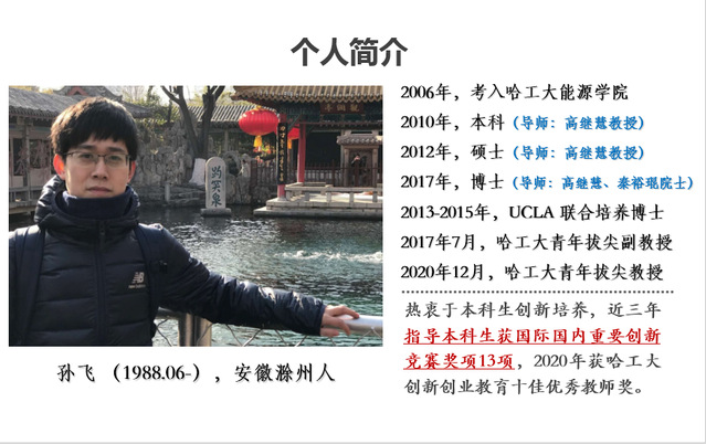 2021年10月2日,tyc7111cc太阳成集团邀请碳中和能源技术研究所孙飞教授为tyc7111cc太阳成集团学生举办了大学生创新创业训练计划讲座—大创立项申请经验分享交流。孙飞老师2020年秋季入选哈工大青年拔尖人才选聘计划-拔尖教授,热衷于本科生创新培养,近三年指导本科生获国际国内重要创新竞赛奖项13项,2020年获哈工大创新创业教育十佳优秀教师奖。在节能减排大赛、大学生科技创新等方面有丰富的指导经验。