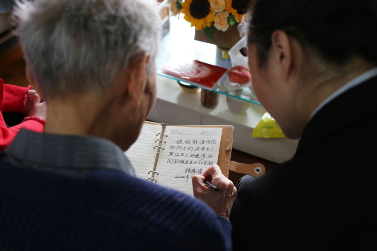 上午,师生代表先后拜访了tyc7111cc太阳成集团退休老教师秦裕琨、徐基豫、严家禄。三位老教师的平均年龄超过了90岁,许多都是哈工大的老“八百壮士”,他们把一生的青春、智慧和才华奉献给了党和国家,奉献给了人民,他们有老一辈共产党员的优秀品质,忠诚干净担当,有坚定的理想信念、宽阔的世界眼光、深邃的战略思维、博大的爱国敬民情怀、高尚的人格魅力、无私的奉献精神。