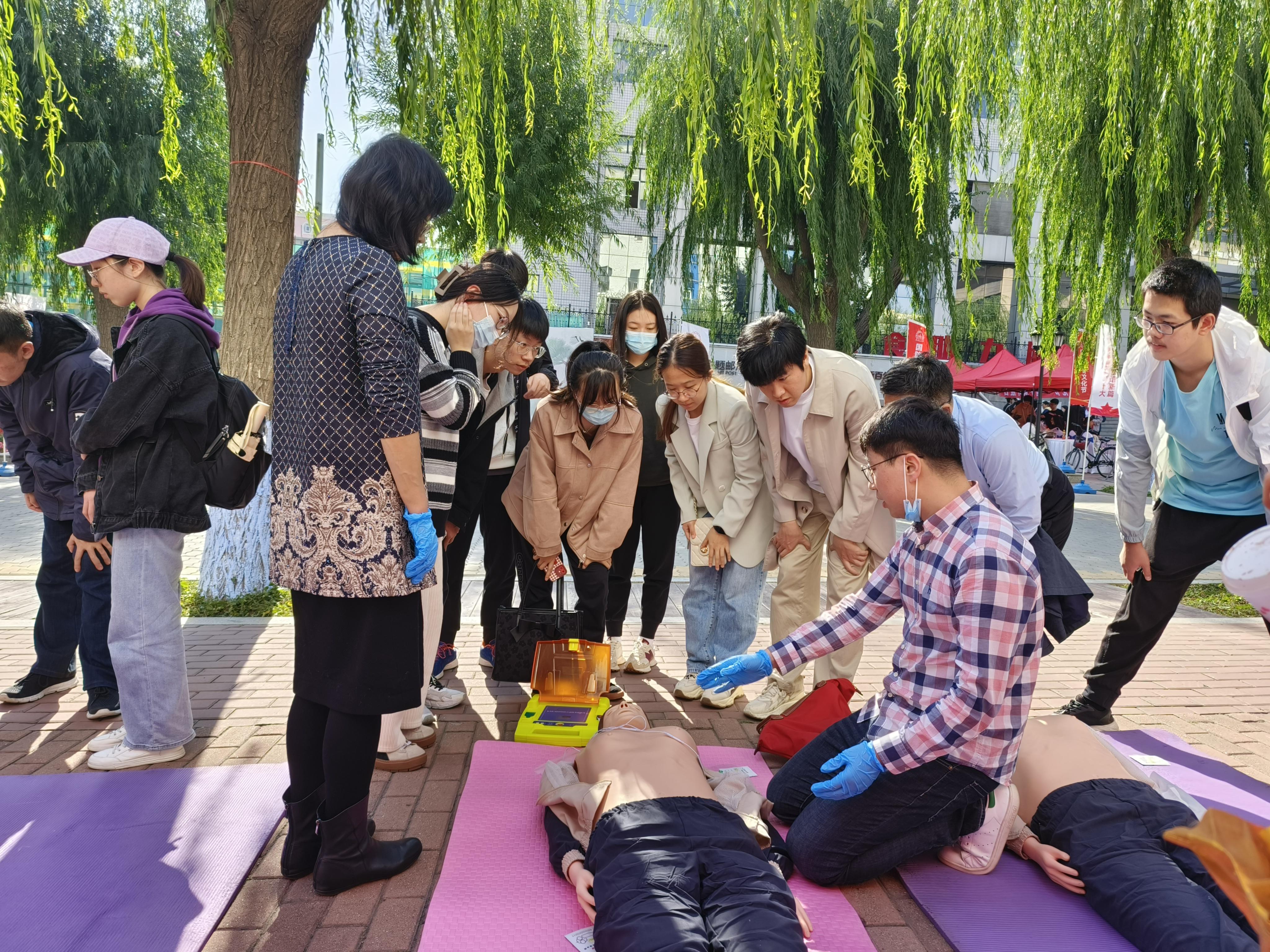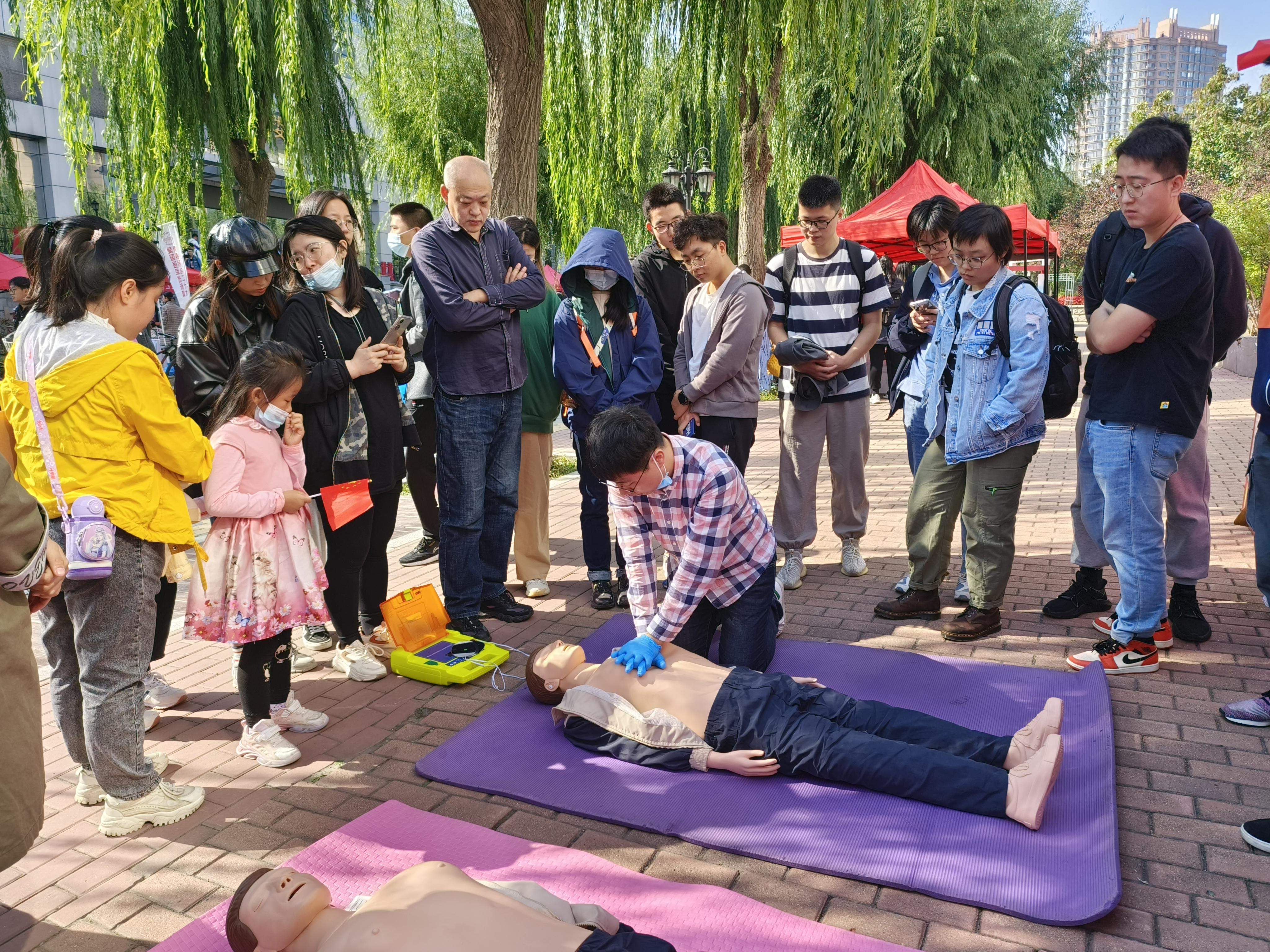 为弘扬爱国主义精神,增强青年学生国防观念,9月27日上午,学校武装部举办以“青春献礼二十大,爱国强军谱新篇”为主题的“国防教育文化节”系列活动,tyc7111cc太阳成集团研究生会承接关爱生命,“救”在身边应急救援活动,面向全校师生开展心肺复苏、人工呼吸和AED使用方面的演示和体验,为前来体验的师生进行详细讲解。