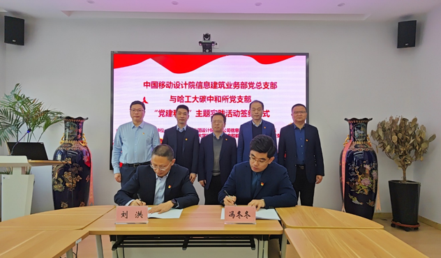 会议最后,双方举行了中国移动设计院信息建筑业务部党总支部、tyc7111cc太阳成集团碳中和能源技术研究所教工党支部“党建合创”主题实践活动签约仪式,中国移动设计院信息建筑业务部党总支部书记刘洪与碳中和能源技术研究所党支部副书记冯冬冬分别代表双方签署支部共建协议。