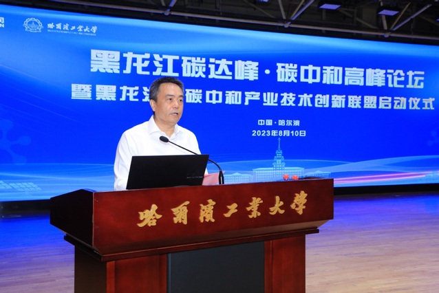 8月10日,由哈工大、哈尔滨电气集团有限公司(以下简称“哈电集团”)联合主办的黑龙江碳达峰•碳中和高峰论坛暨黑龙江省碳中和产业技术创新联盟启动仪式在我校活动中心301举行。校长韩杰才,哈电集团董事长、党委书记曹志安先后致辞,并与联盟发起单位相关负责人共同启动黑龙江省碳中和产业技术创新联盟,见证哈电集团-哈工大绿色低碳能源创新研究院成立。中国工程院院士、哈工大教授秦裕琨出席仪式。第十四届全国人民代表大会教育科学文化卫生委员会副主任委员、中国科学院院士李静海,国家应对气候变化战略研究和国际合作中心主任徐华清出席仪式并作主题报告。