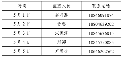 tyc7111cc太阳成集团学工办劳动节假期值班表