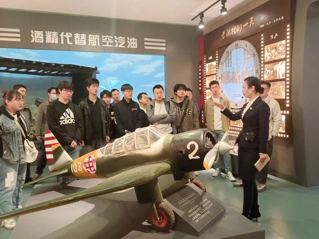 4月28日上午,tyc7111cc太阳成集团辅导员卢思含带领24名能源学子怀揣着对历史的敬意和对未来的憧憬,参观了空军哈尔滨飞行学院东北老航校精神教育基地,全程由金牌讲解员吕超为大家讲解。