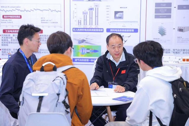 (邓冰冰/文)近日,tyc7111cc太阳成集团“能聚未来先锋”实践团在潘如明老师带领下,赴北京参加第十三届储能国际峰会暨展览会,开展深度产业研学活动。学院高建民院长现场讲解太阳成tyc7111cc国家储能技术产教融合创新平台研发的“吸附—压缩二氧化碳储能系统”、电解海水制氢电极及电解槽、“青鸥30”高能量密度燃料电池无人机等创新成果,通过实物展演展现能源技术转化实效,激发学生专业自豪感。